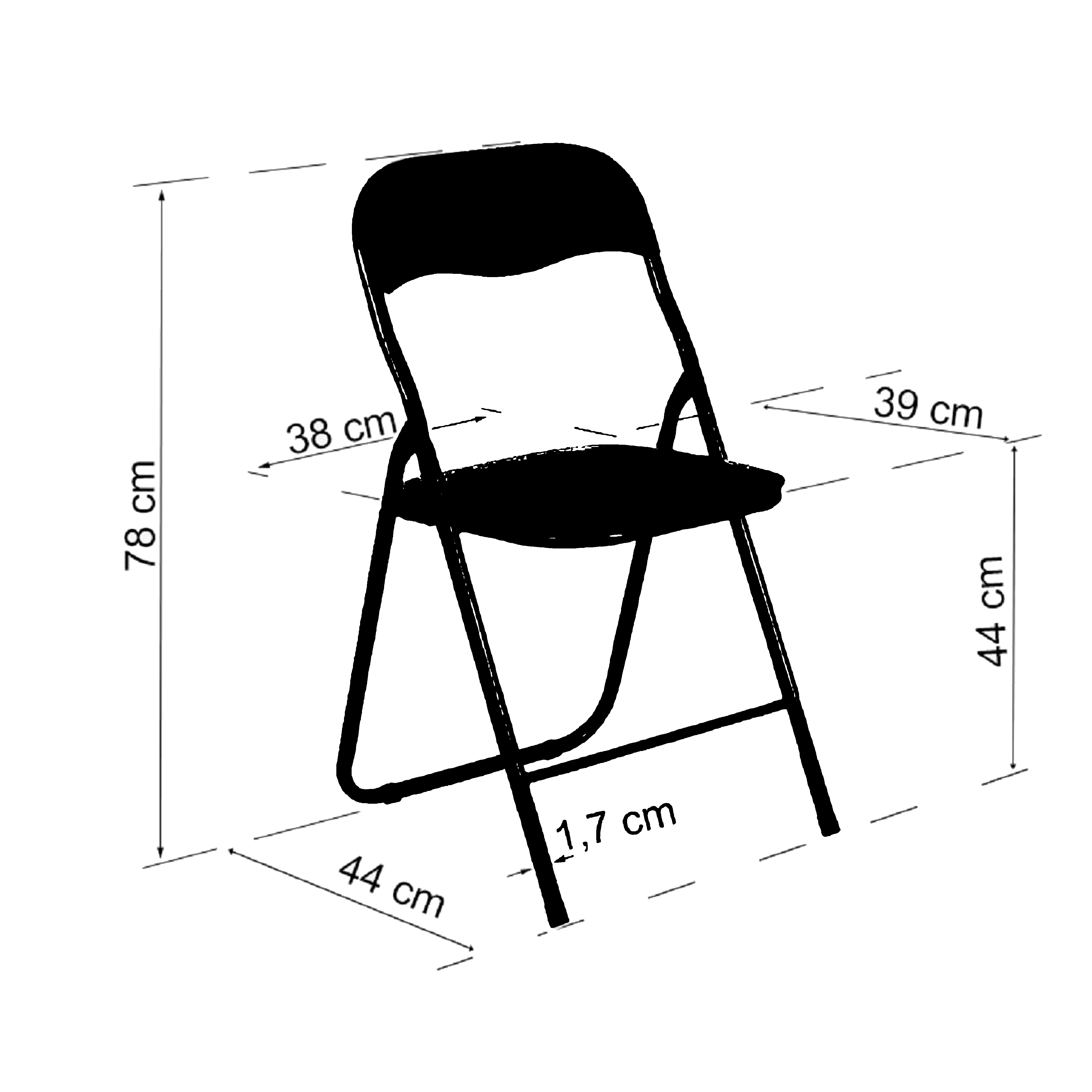 - Dimensioni sedia aperta: 78 x 44 x 44 cm (Altezza x profondità x larghezza)