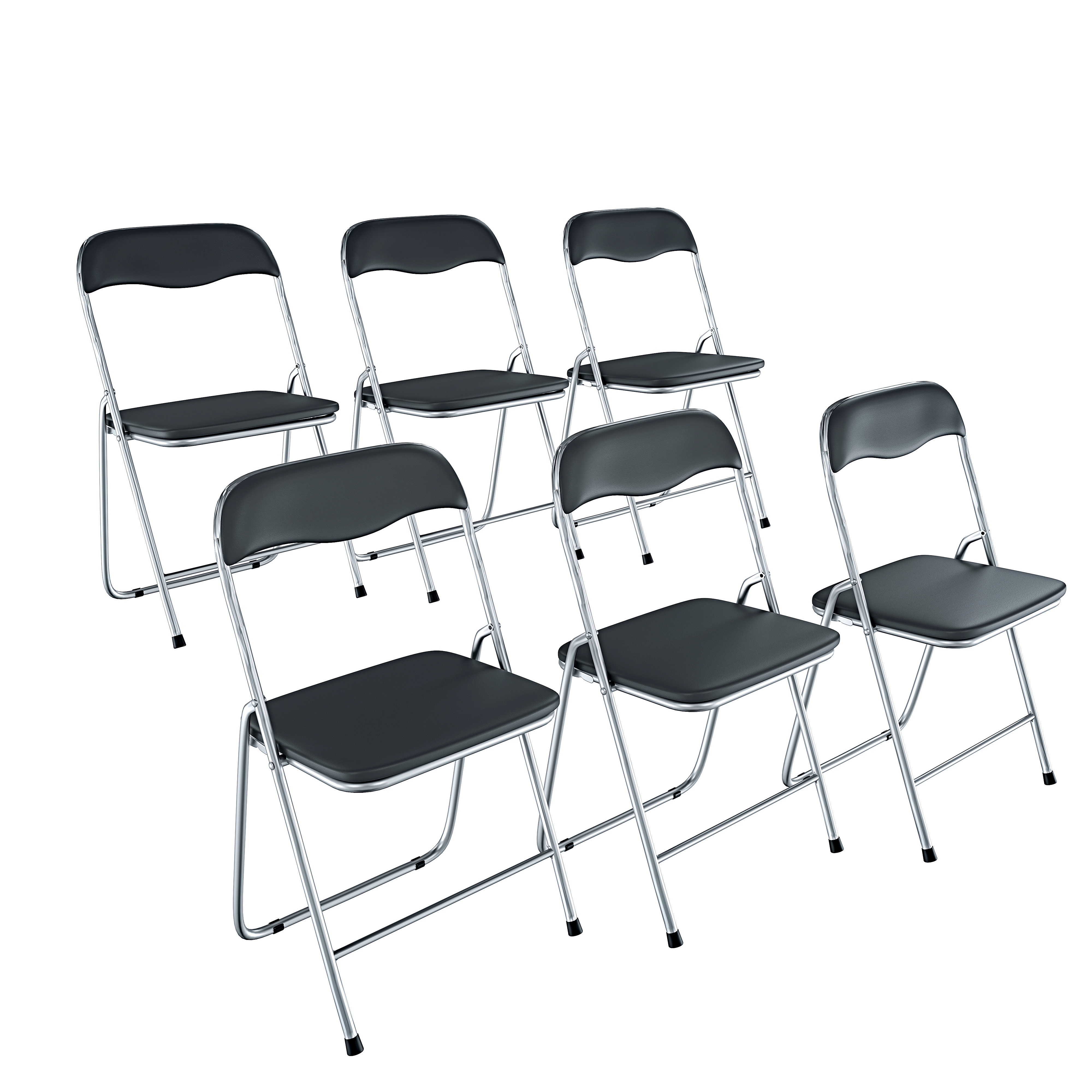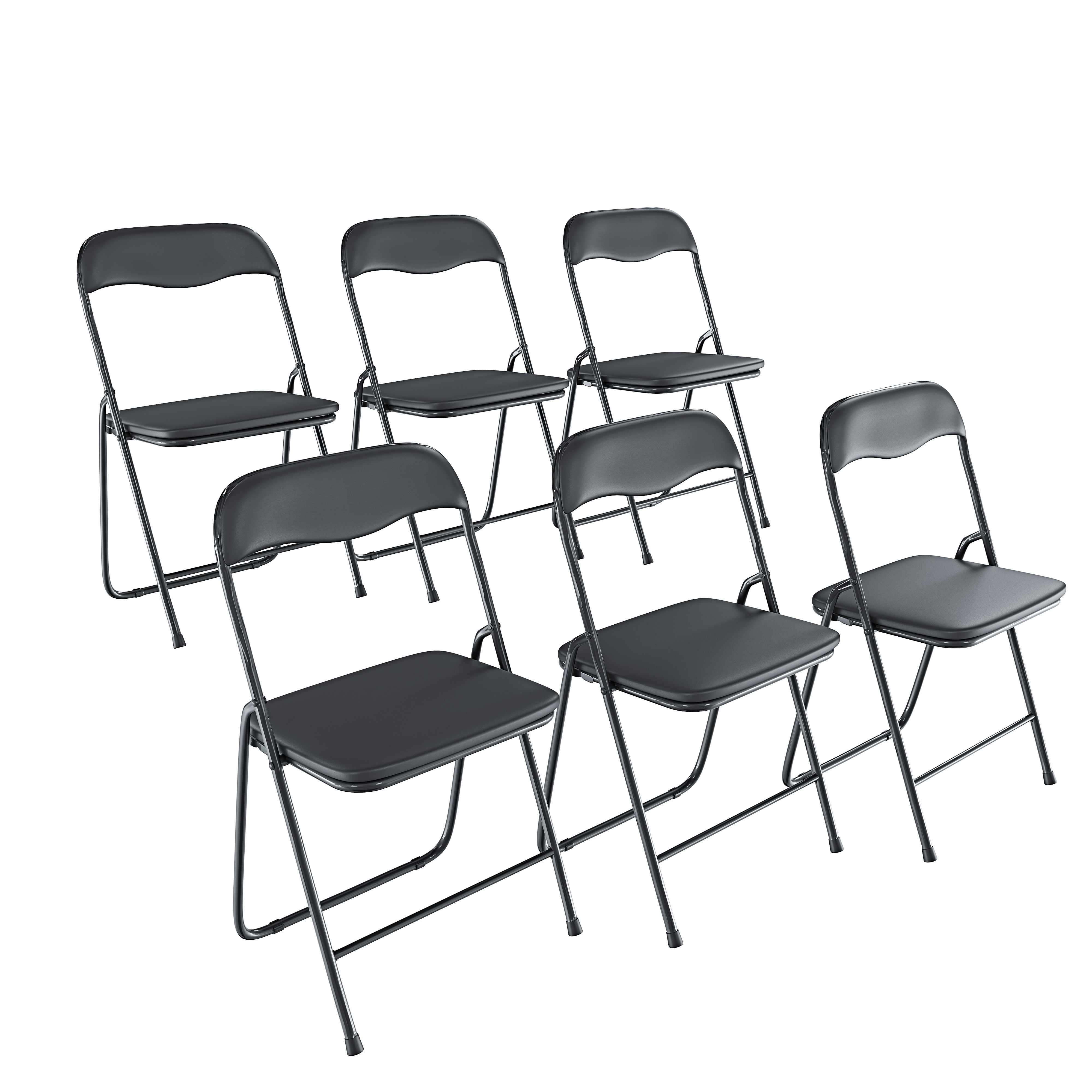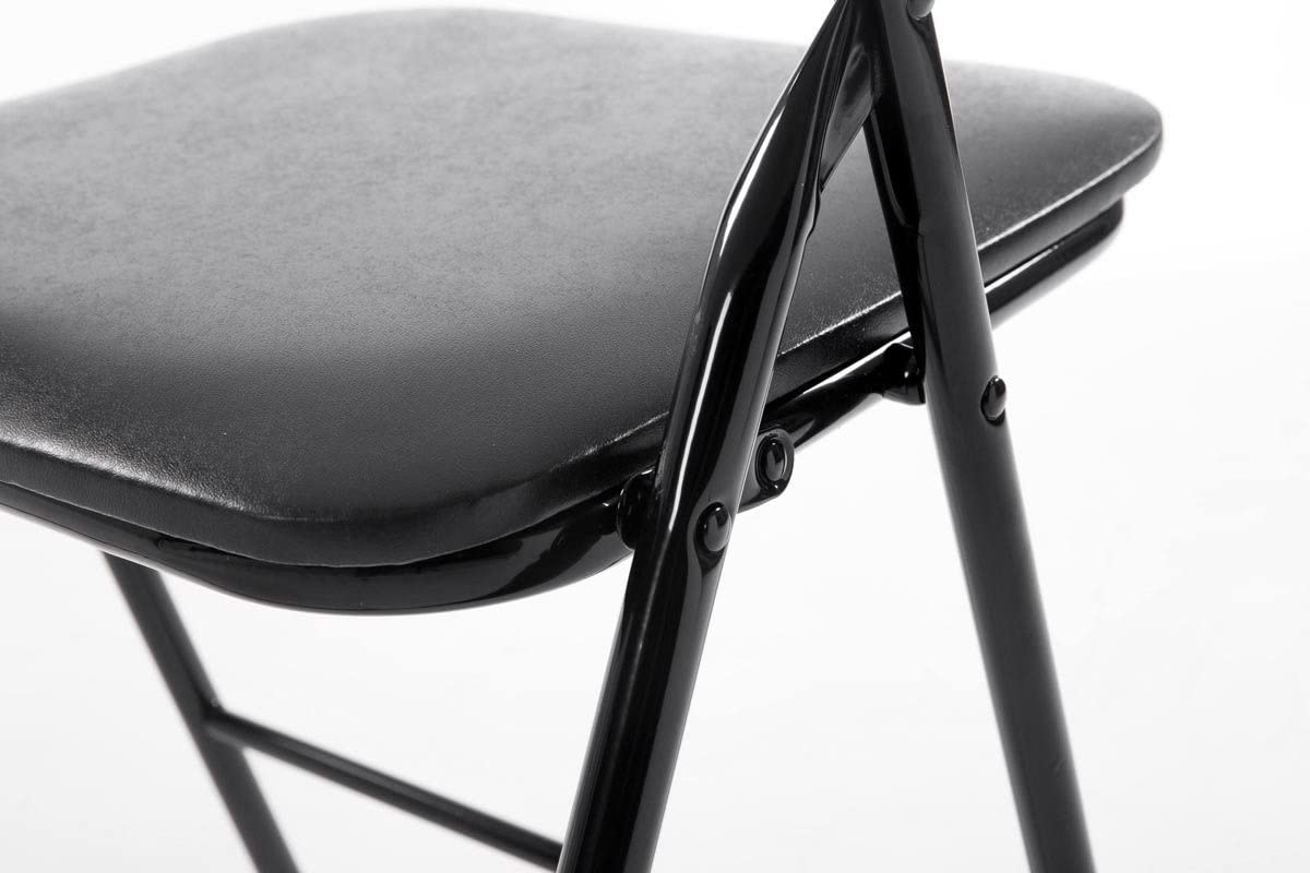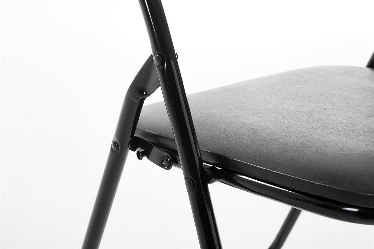 Set da 6 Sedia Pieghevole Slim Opaca in Metallo Sedie Salvaspazio per Ufficio Casa Campeggio Salotto Cucina In Ecopelle con Comoda Seduta Imbottita 78 x 44 x 44 cm (Nero)