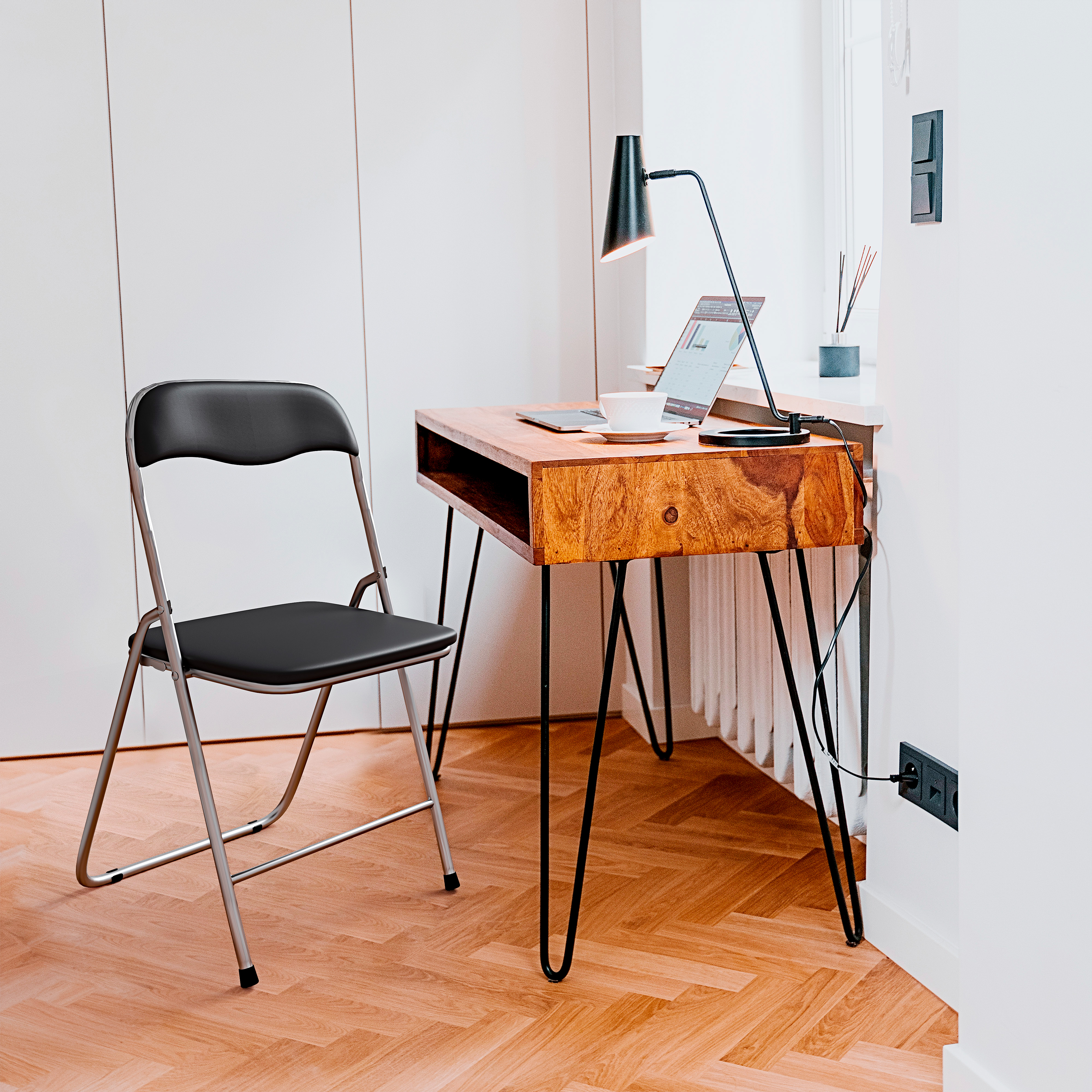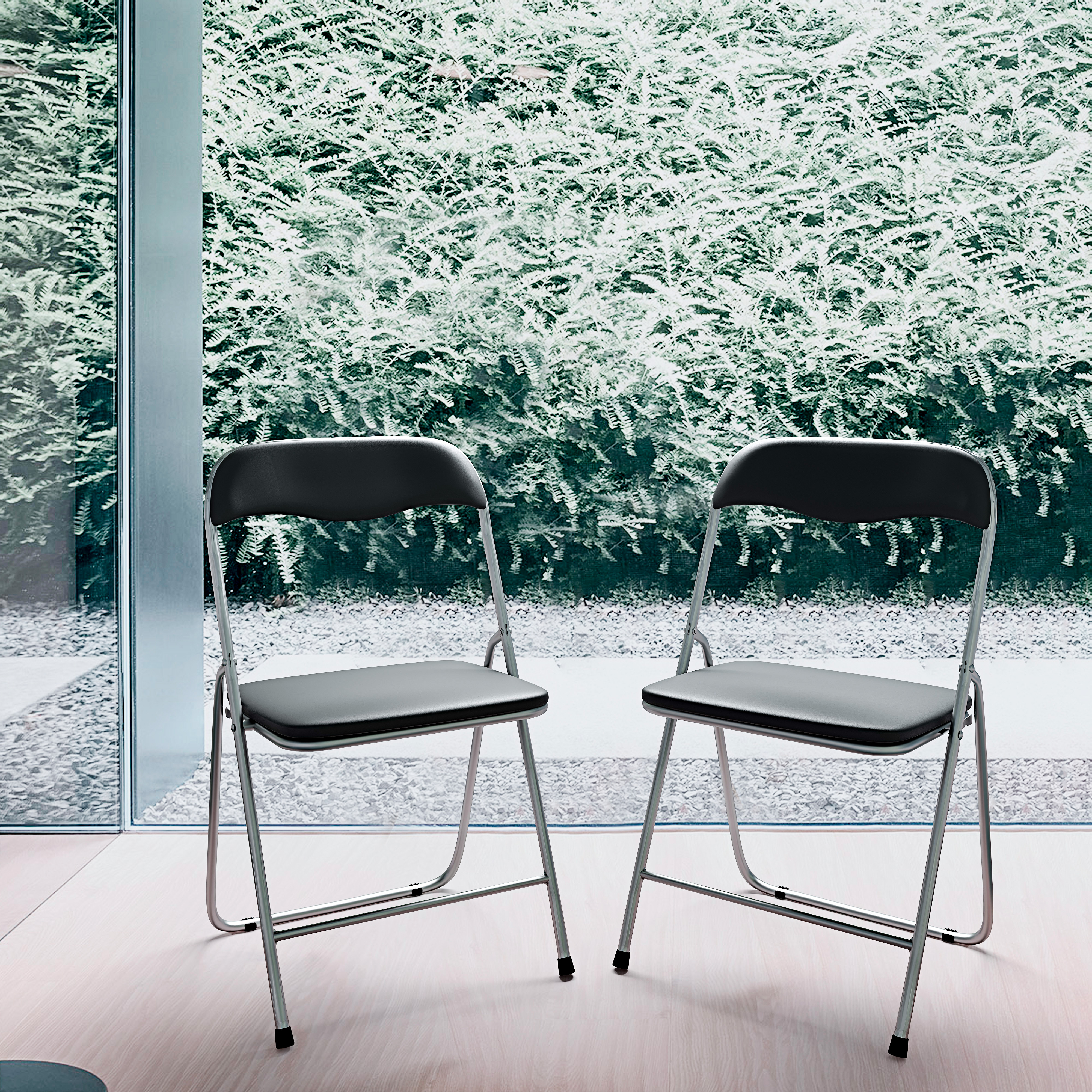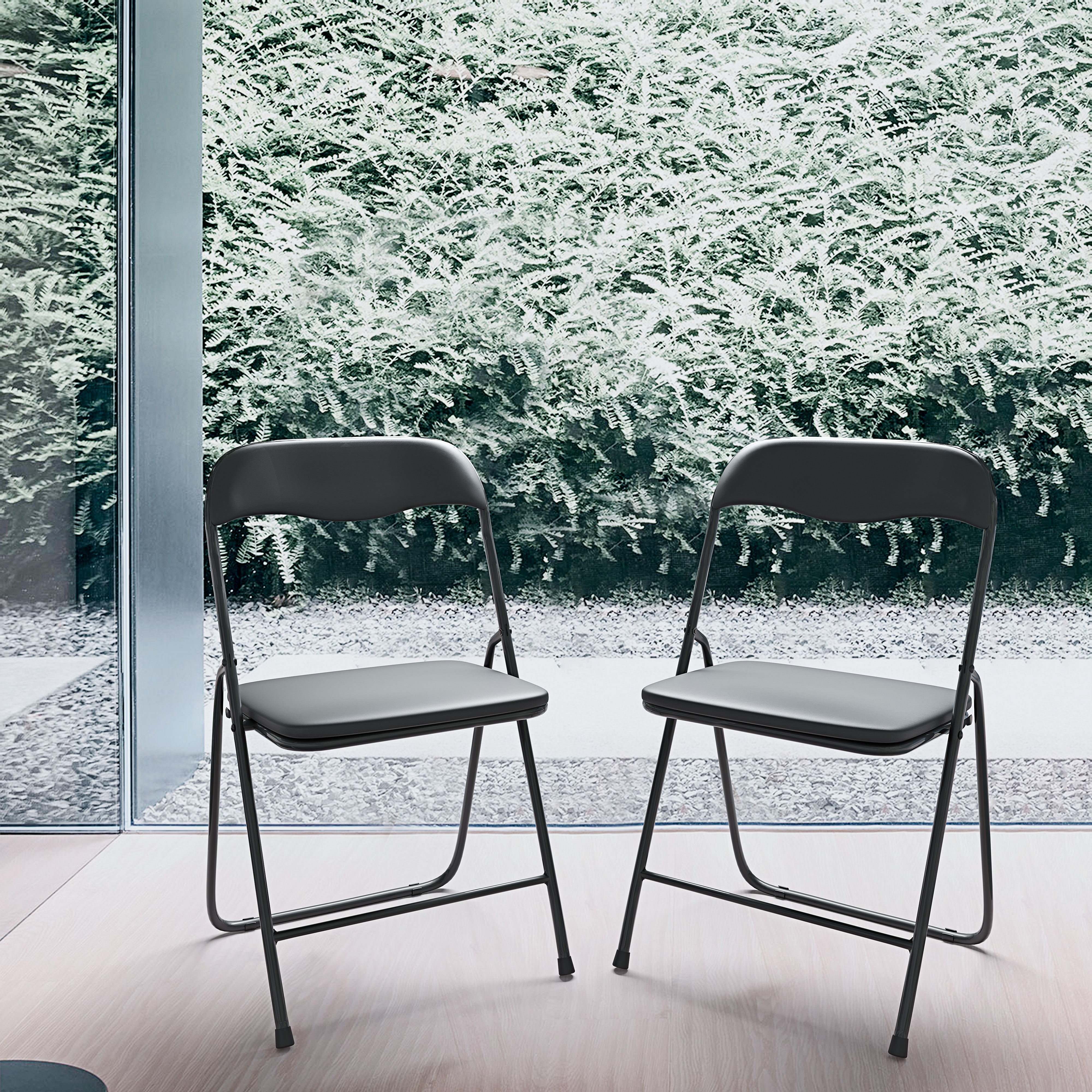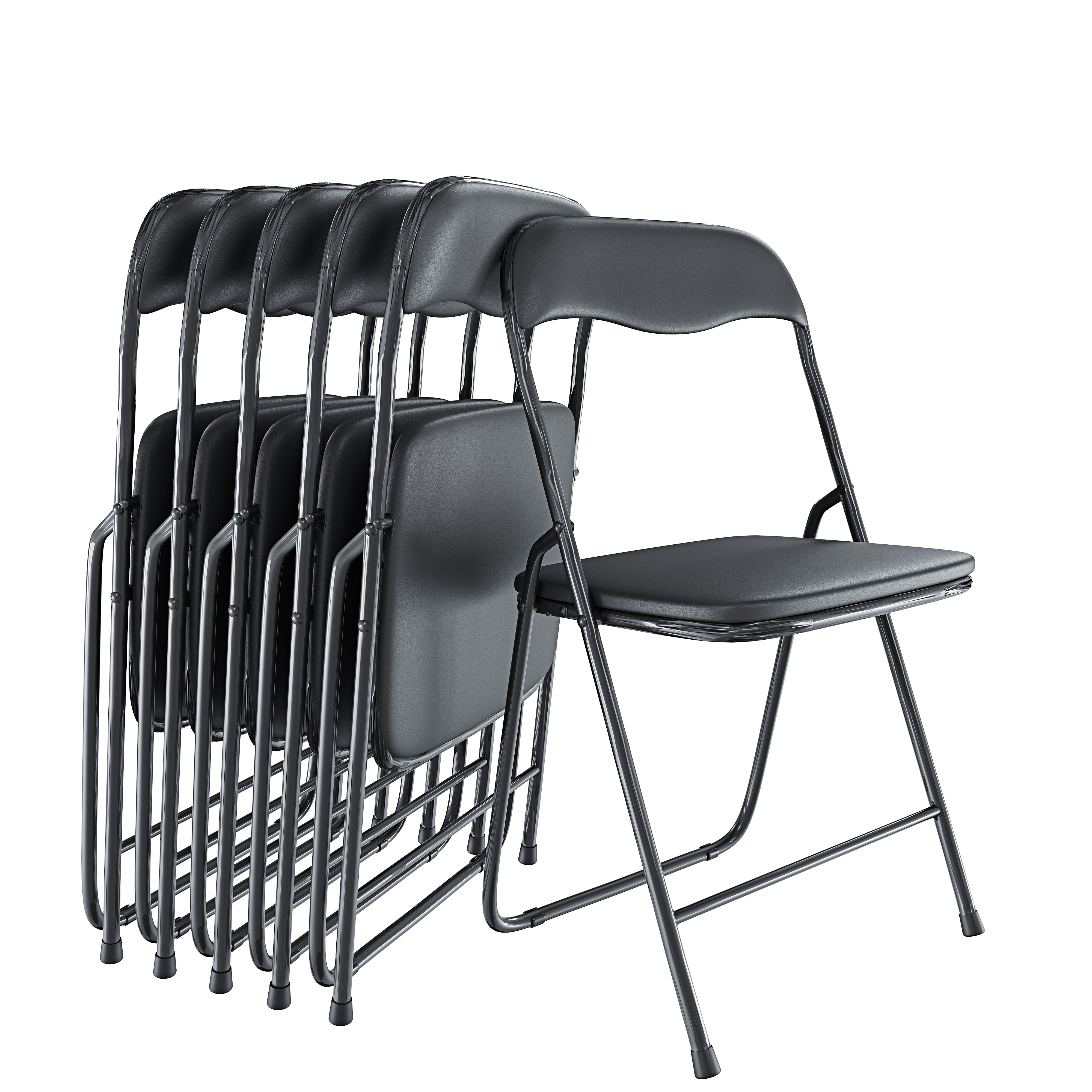 Set da 6 Sedia Pieghevole Slim Opaca in Metallo Sedie Salvaspazio per Ufficio Casa Campeggio Salotto Cucina In Ecopelle con Comoda Seduta Imbottita 78 x 44 x 44 cm (Nero)